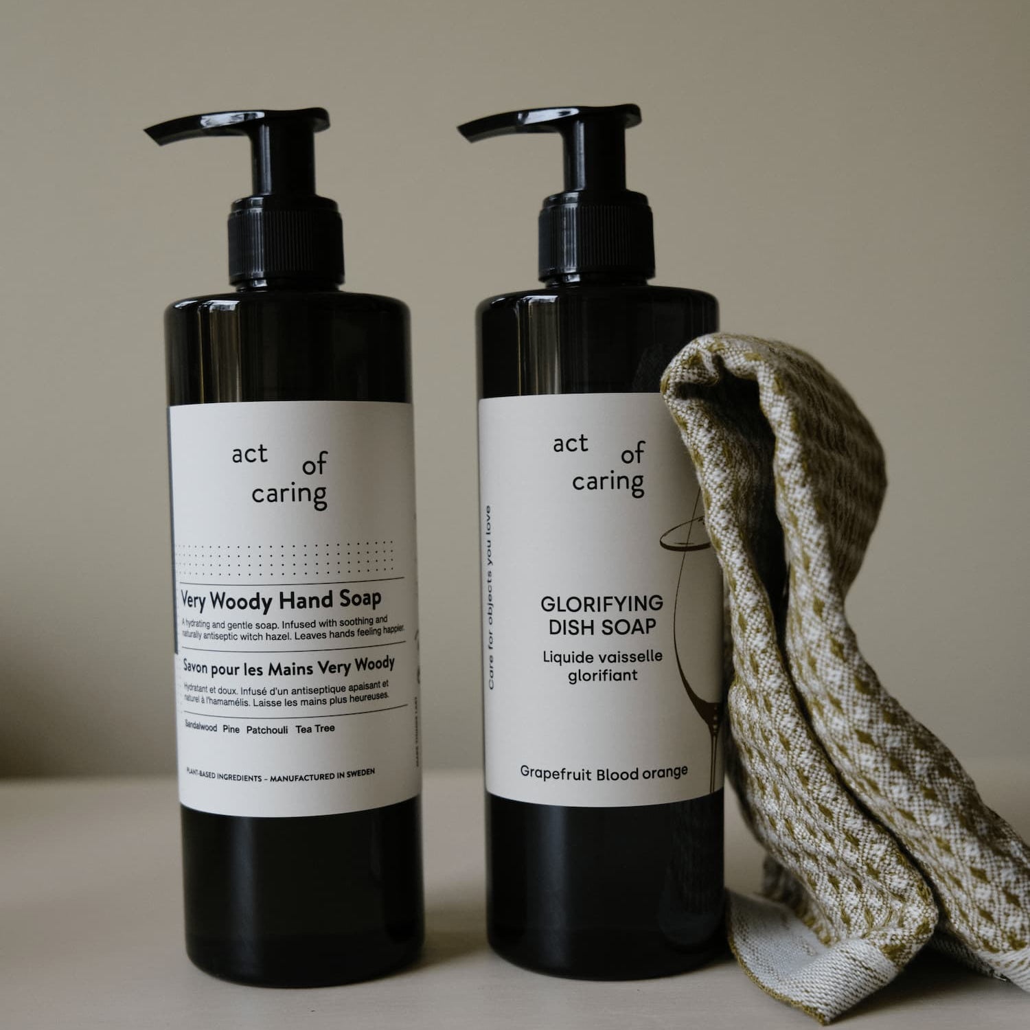 Glorifying Dish Soap - A powerful yet gentle dish soap that effectively dissolves grease and leaves dishes with a shiny clean finish. Scented with carefully selected ingredients for a fresh and elegant experience with every wash.