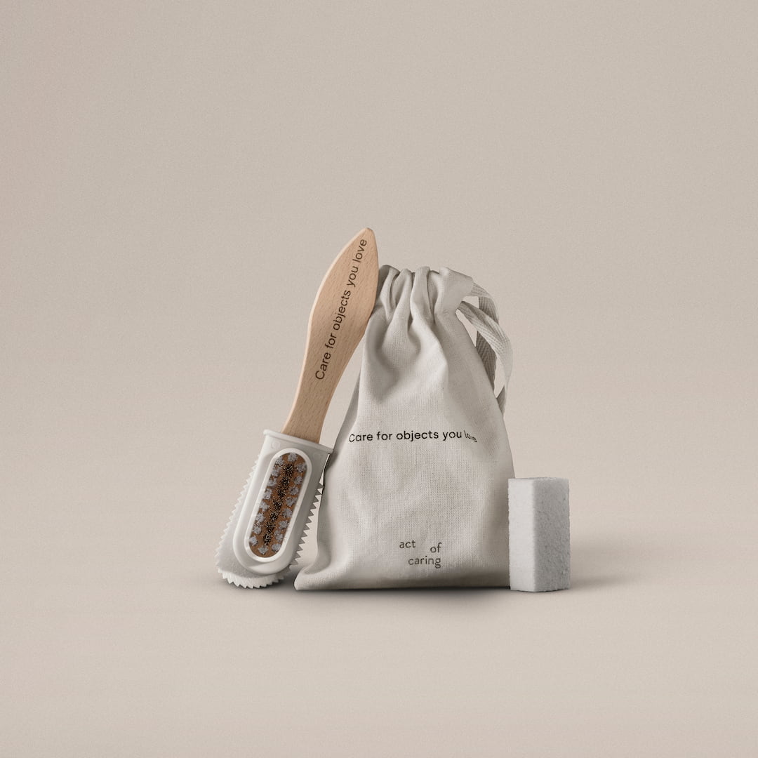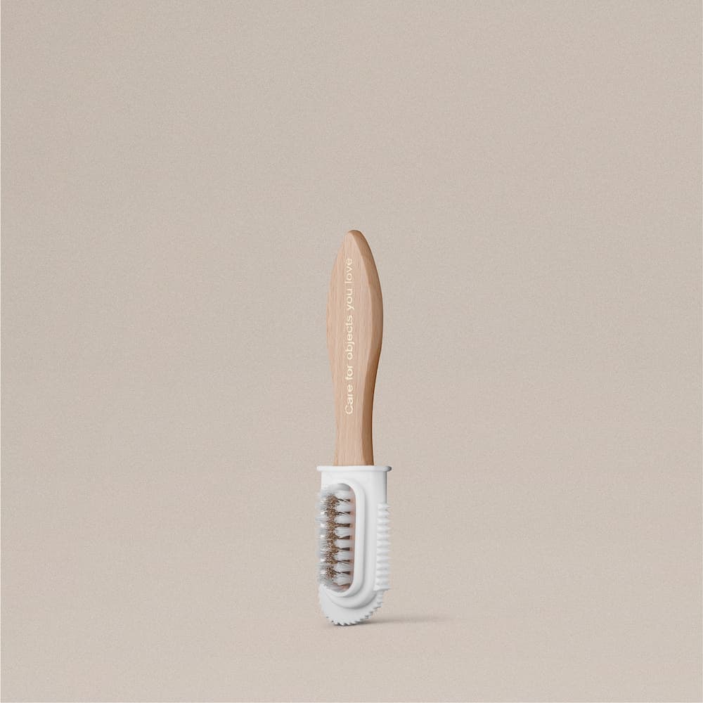 The suede brush removes dirt, refreshes the material and restores its natural structure – without water or chemicals.