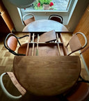 Matbordet har dessutom en smart lösning med iläggsskivor som förvaras under bordet och enkelt lyfts upp för rymma många gäster.