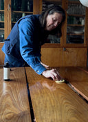 Svante och Camilla började med att rengöra bordet med en Reviving Wood Cleanser, en naturlig trärengöring. Därefter oljade de bordet med en Nourishing Wood Oil, en växtbaserad olja som fungerar på alla trämaterial som är obehandlade eller tidigare oljade. Resultatet blev fantastiskt och bordet som nytt igen.